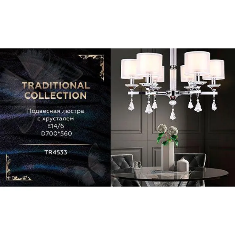 Подвесная люстра Ambrella Light Traditional TR4533/135051 — это элегантное и стильное решение для вашего дома. Она прекрасно подходит для установки в гостиной, столовой, спальне или прихожей. Люстра выполнена в изысканном классическом стиле и станет настоящим украшением любого интерьера.
