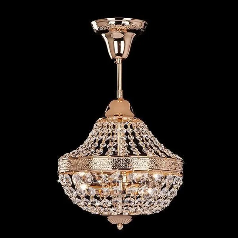 Преобладающий цвет люстры: Золотой, арматуры: Золото; материал изготовления арматуры: Металл, размеры, мм: / высота 350 / диаметр 300. Общая мощность – 240 Ватт, а максимальная площадь освещения до 13,3 м2. Основной тип ламп, предусмотренный производителем: Накаливания с цоколем E14. В зависимости от предпочтений можно использовать лампы теплового, холодного или нейтрального света, за исключением люстр с типом цоколя LED.