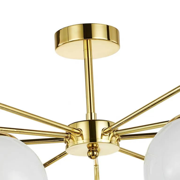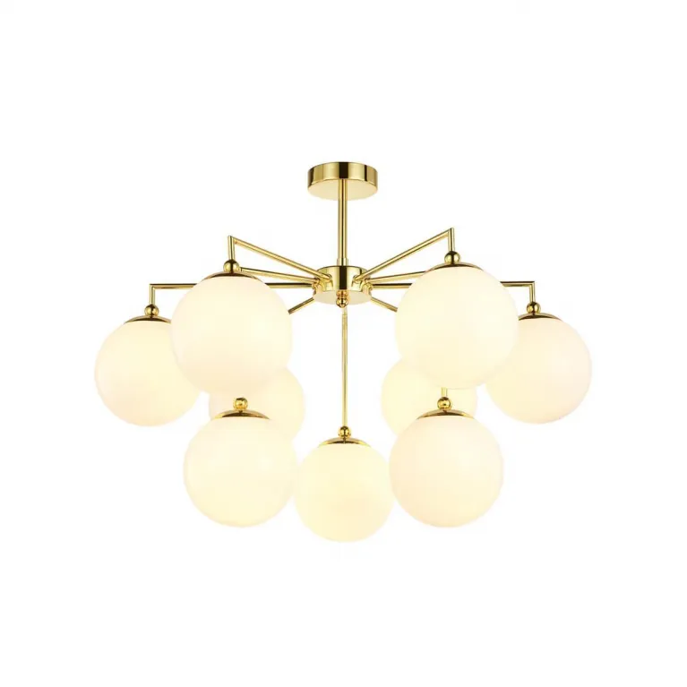 Эта модель оснащена девятью источниками света с цоколем E14, что обеспечивает яркое и равномерное освещение пространства. За счет использования патронов такого типа люстра совместима со многими видами ламп, включая энергосберегающие и светодиодные, что позволяет выбрать источник света в зависимости от ваших предпочтений и потребностей.
