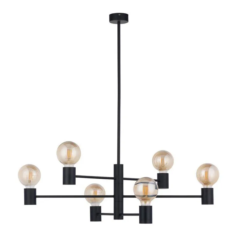 Преобладающий цвет люстры: Черный, арматуры: Черный; материал изготовления арматуры: Сталь, размеры, мм: / высота 860 / диаметр 870. Общая мощность – 360 Ватт. Основной тип ламп, предусмотренный производителем: Накаливания с цоколем E27. В зависимости от предпочтений можно использовать лампы теплового, холодного или нейтрального света, за исключением люстр с типом цоколя LED.