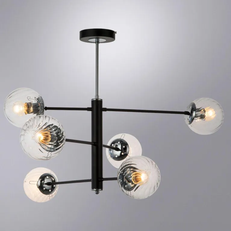 Потолочная люстра Arte Lamp Segi A3566PL-6BK — это стильное и функциональное решение для вашего дома. Она идеально подходит для установки в гостиной, столовой, спальне или кабинете и поможет создать уют и элегантность в интерьере. Люстра крепится на потолок и имеет тип монтажа на планку, что делает её удобной для установки на различных типах поверхностей.