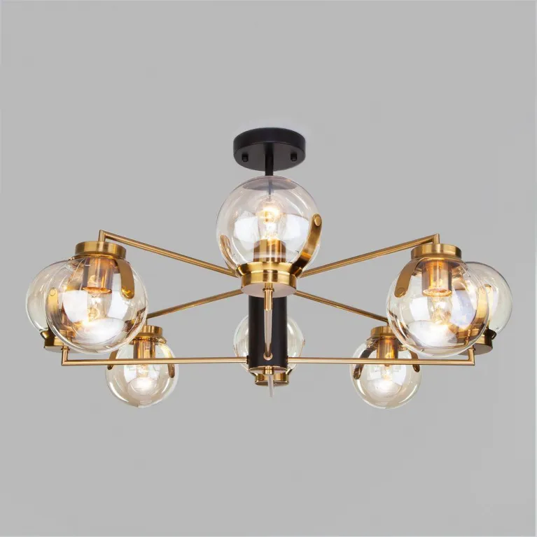 Люстра совместима с потолками разных типов — натяжными, подвесными, бетонными и др. Удобная конструкция позволяет регулировать длину подвеса, что делает её универсальной для помещений с разной высотой потолков. Благодаря компактным размерам и лаконичному дизайну, она не занимает много места и гармонично вписывается в интерьер.