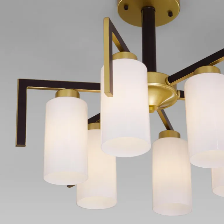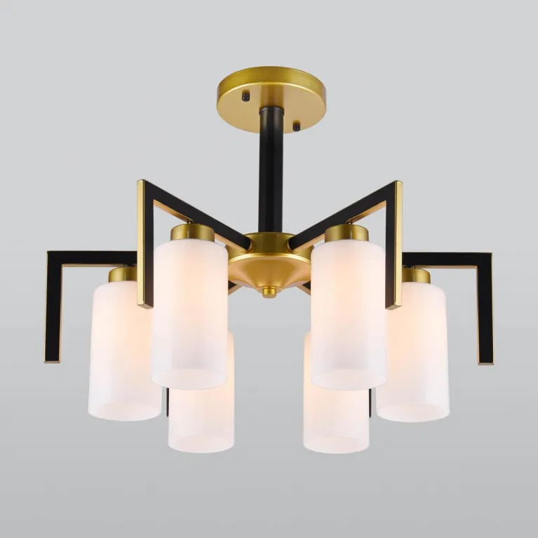 Преобладающий цвет люстры: Белый, плафонов: Белый, арматуры: Черный; материал изготовления арматуры: Металл, размеры, мм: / высота 450 / диаметр 570. Общая мощность – 360 Ватт, а максимальная площадь освещения до 18 м2. Основной тип ламп, предусмотренный производителем: Накаливания с цоколем E27. В зависимости от предпочтений можно использовать лампы теплового, холодного или нейтрального света, за исключением люстр с типом цоколя LED.