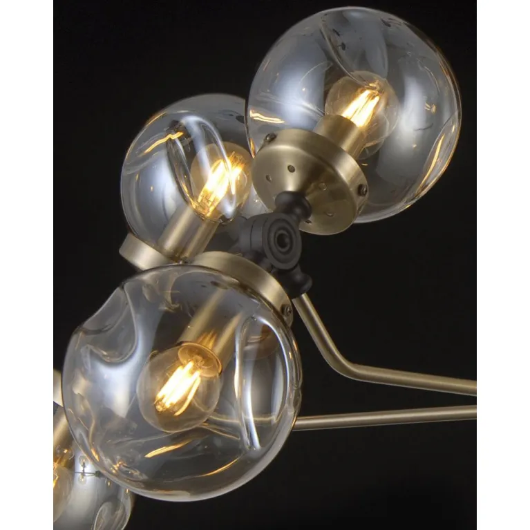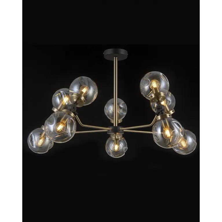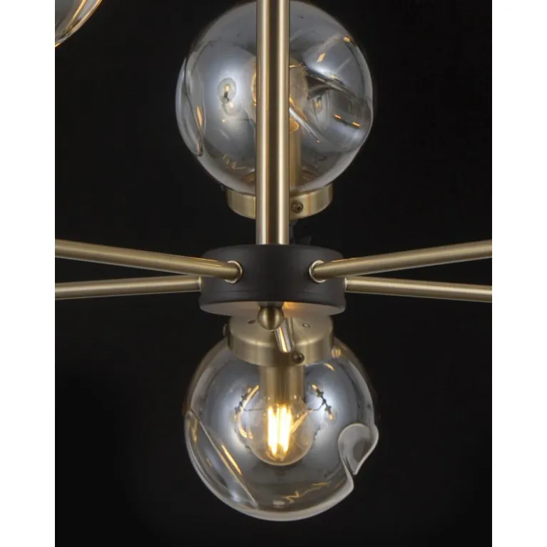 Преобладающий цвет люстры: Шампань, плафонов: Шампань, арматуры: Бронза; материал изготовления арматуры: Металл, размеры, мм: / высота 490 / диаметр 880. Общая мощность – 600 Ватт, а максимальная площадь освещения до 30 м2. Основной тип ламп, предусмотренный производителем: Накаливания с цоколем E14. В зависимости от предпочтений можно использовать лампы теплового, холодного или нейтрального света, за исключением люстр с типом цоколя LED.