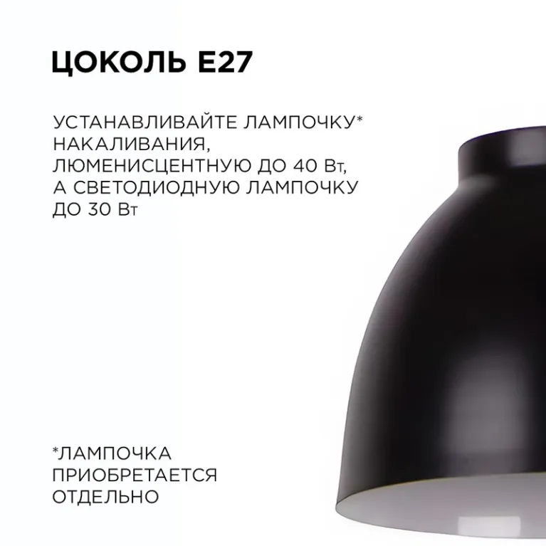 Преобладающий цвет плафонов: Черный, арматуры: Черный; материал изготовления арматуры: Металл, размеры, мм: длина 135 / ширина 135 / высота 105 Общая мощность – 120 Ватт, а максимальная площадь освещения до 6 м2. Основной тип ламп, предусмотренный производителем: Накаливания с цоколем E27. В зависимости от предпочтений можно использовать лампы теплового, холодного или нейтрального света, за исключением люстр с типом цоколя LED.