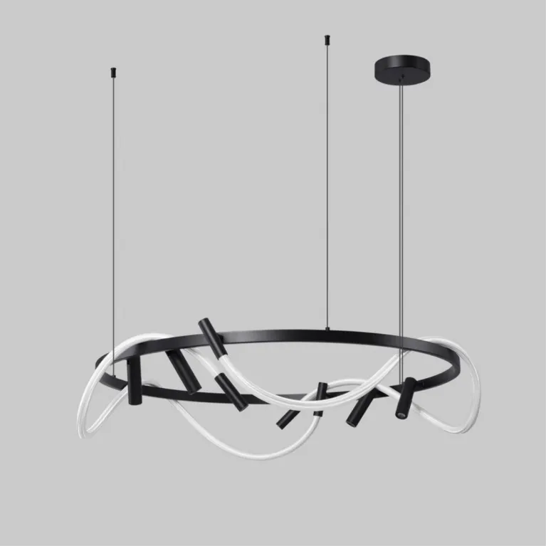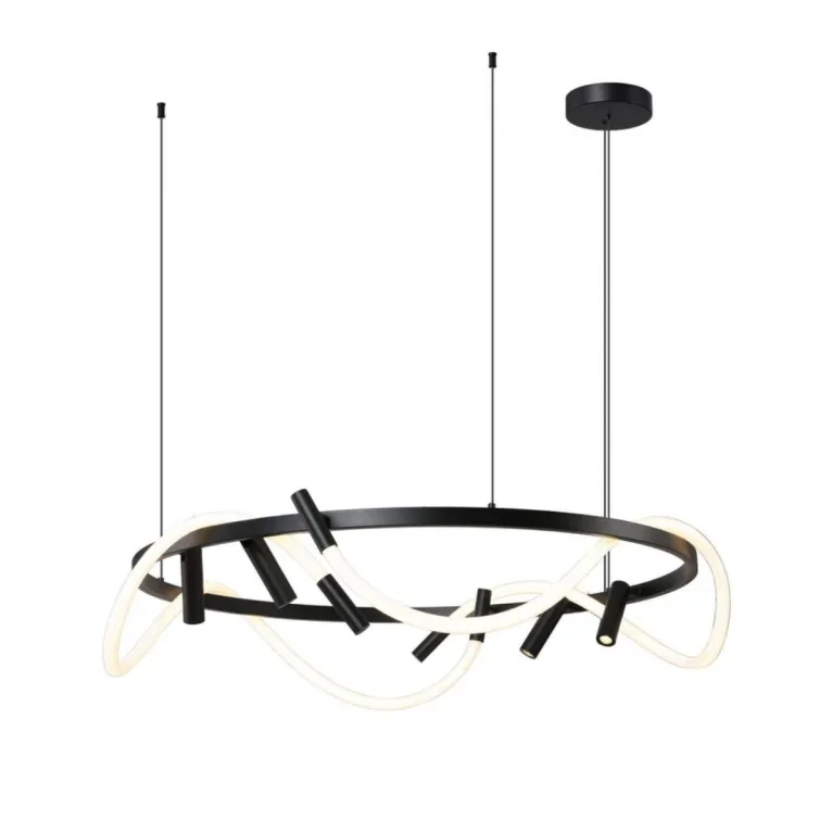 Преобладающий цвет плафонов: Белый, арматуры: Черный; материал изготовления арматуры: Металл, размеры, мм: / высота 1200 / диаметр 900. Общая мощность – 84 Ватт. Основной тип ламп, предусмотренный производителем: Светодиодная с цоколем LED. В зависимости от предпочтений можно использовать лампы теплового, холодного или нейтрального света, за исключением люстр с типом цоколя LED.