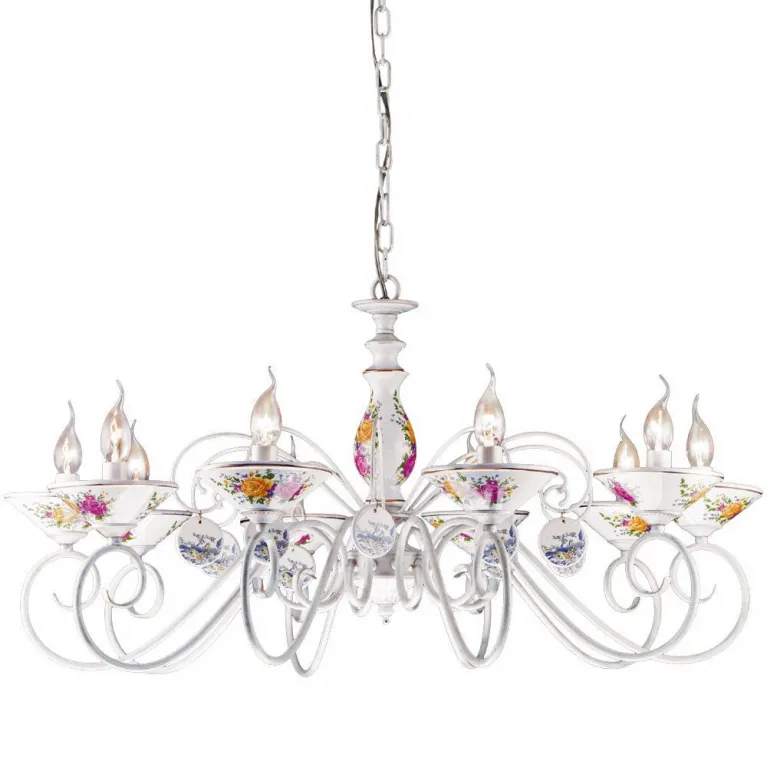 Люстра крепится на потолок с помощью прочного металлического крюка и совместима с лампами типа E14, что позволяет использовать разнообразные виды ламп, включая энергосберегающие и светодиодные. Патрон не входит в комплект поставки и приобретается отдельно.