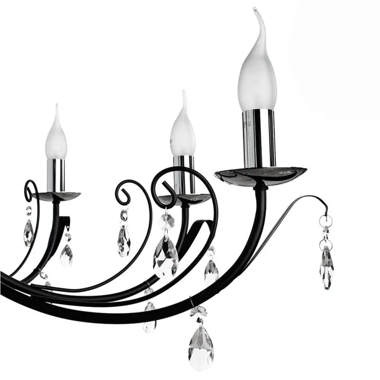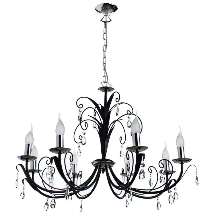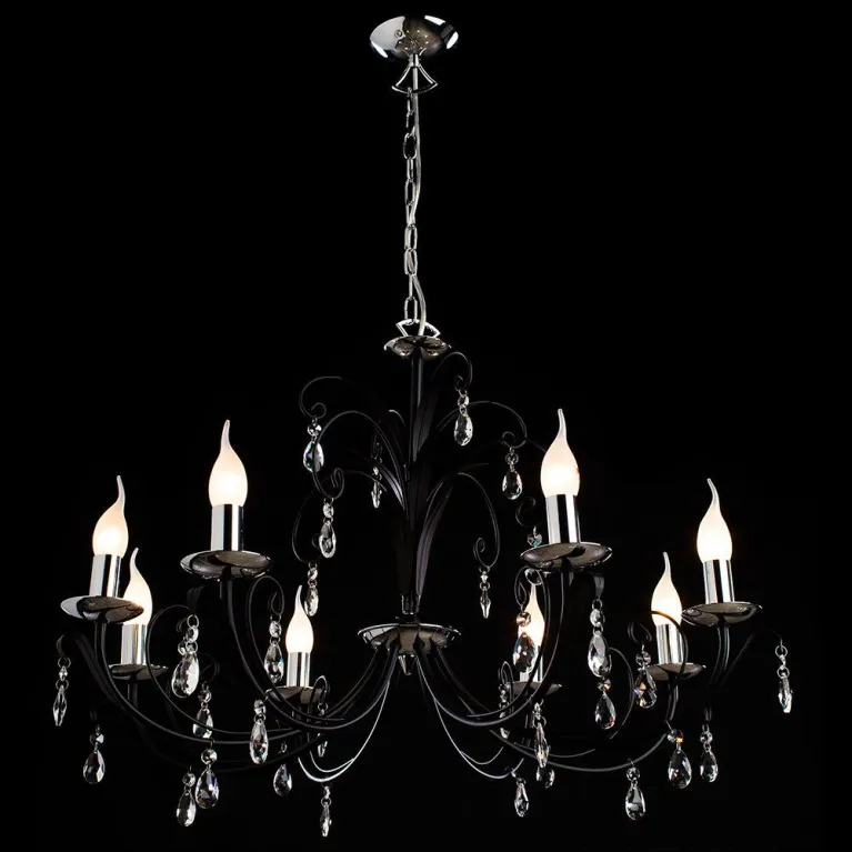 Преобладающий цвет люстры: Черный, арматуры: Черный; материал изготовления арматуры: Металл, размеры, мм: / высота 440 / диаметр 780. Общая мощность – 320 Ватт, а максимальная площадь освещения до 17,8 м2. Основной тип ламп, предусмотренный производителем: Накаливания с цоколем E14. В зависимости от предпочтений можно использовать лампы теплового, холодного или нейтрального света, за исключением люстр с типом цоколя LED.