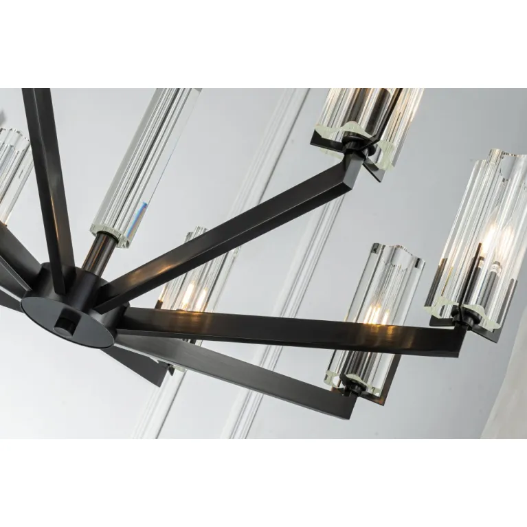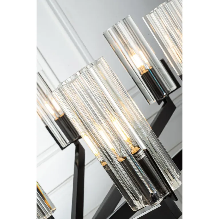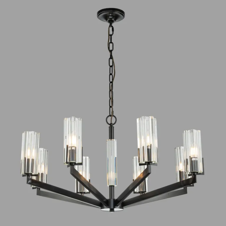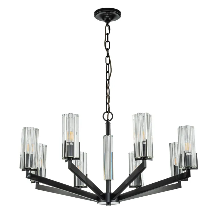 Преобладающий цвет плафонов: Прозрачный, арматуры: Черный; материал изготовления арматуры: Металл, размеры, мм: / высота 1410 / диаметр 800. Общая мощность – Ватт. Основной тип ламп, предусмотренный производителем: Накаливания с цоколем E14. В зависимости от предпочтений можно использовать лампы теплового, холодного или нейтрального света, за исключением люстр с типом цоколя LED.