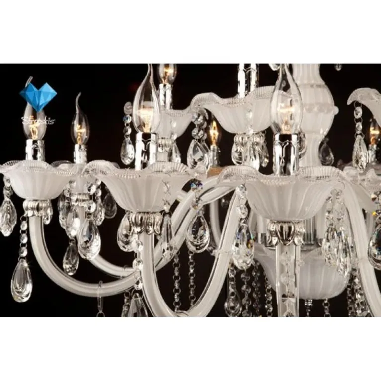 Преобладающий цвет люстры: Белый, арматуры: Белый; материал изготовления арматуры: Металл, размеры, мм: / высота 980 / диаметр 750. Общая мощность – 360 Ватт, а максимальная площадь освещения до 20 м2. Основной тип ламп, предусмотренный производителем: Накаливания с цоколем E14. В зависимости от предпочтений можно использовать лампы теплового, холодного или нейтрального света, за исключением люстр с типом цоколя LED.