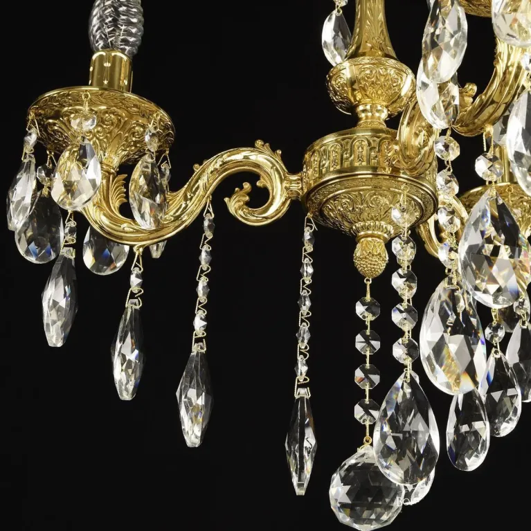 Люстра выполнена в изысканном стиле, сочетающем в себе элементы классики и модерна. Основание из прочного металла с золотистым покрытием придаёт ей роскошный и утонченный вид. Плафоны из белого матового стекла обеспечивают мягкое и равномерное рассеивание света, создавая комфортное освещение в помещении.