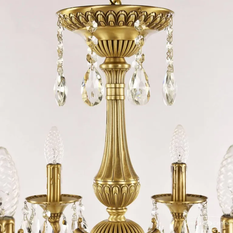 Люстра выполнена из прочного металла и имеет декоративное покрытие цвета бронзы. Она оснащена восемью источниками света с цоколем E14, что позволяет использовать лампы различного типа и мощности. Суммарная мощность ламп не должна превышать 320 Вт, что обеспечивает достаточное освещение и создает уютную атмосферу в помещении.
