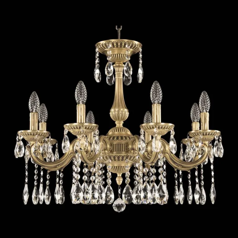Люстра оснащена восемью лампами, что обеспечивает яркое и равномерное освещение пространства. Она совместима с лампами типа E14, что позволяет использовать как традиционные лампы накаливания, так и энергосберегающие или светодиодные лампы, в зависимости от ваших предпочтений и потребностей.