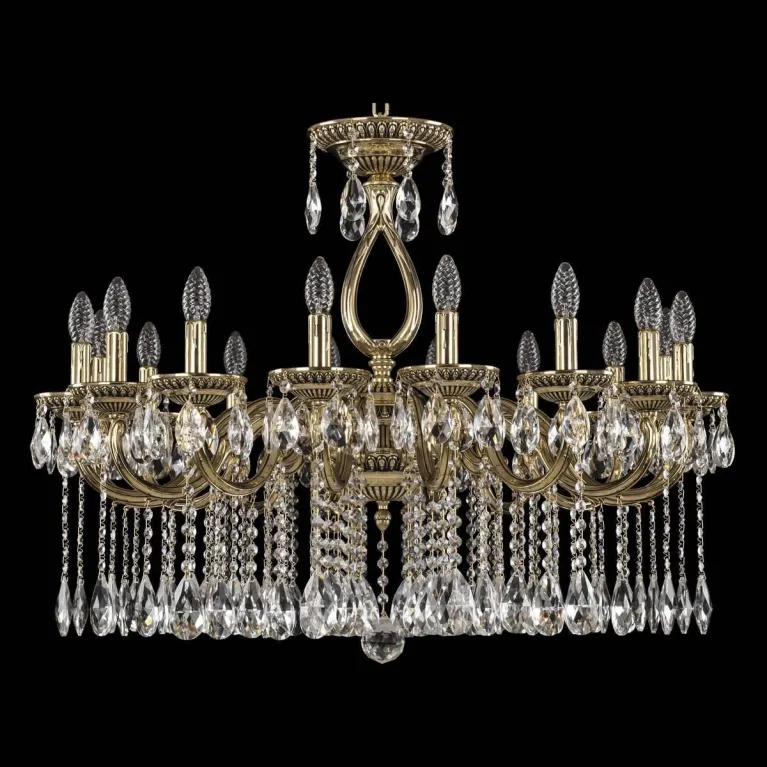 Люстра имеет 16 ламп, что обеспечивает яркое и равномерное освещение пространства площадью до 96 м² [1]. Она оснащена патронами типа E14, что позволяет использовать как традиционные лампы накаливания, так и энергосберегающие или светодиодные лампы, в зависимости от ваших предпочтений и потребностей.