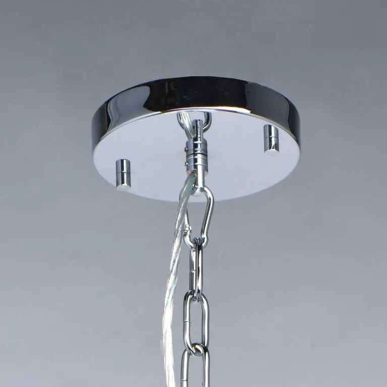 Подвесная конструкция позволяет регулировать высоту люстры в зависимости от высоты потолков и особенностей помещения. Удобный способ монтажа обеспечивает надежность и стабильность установки.