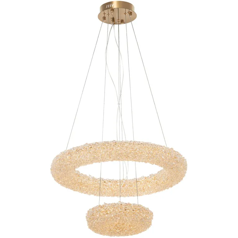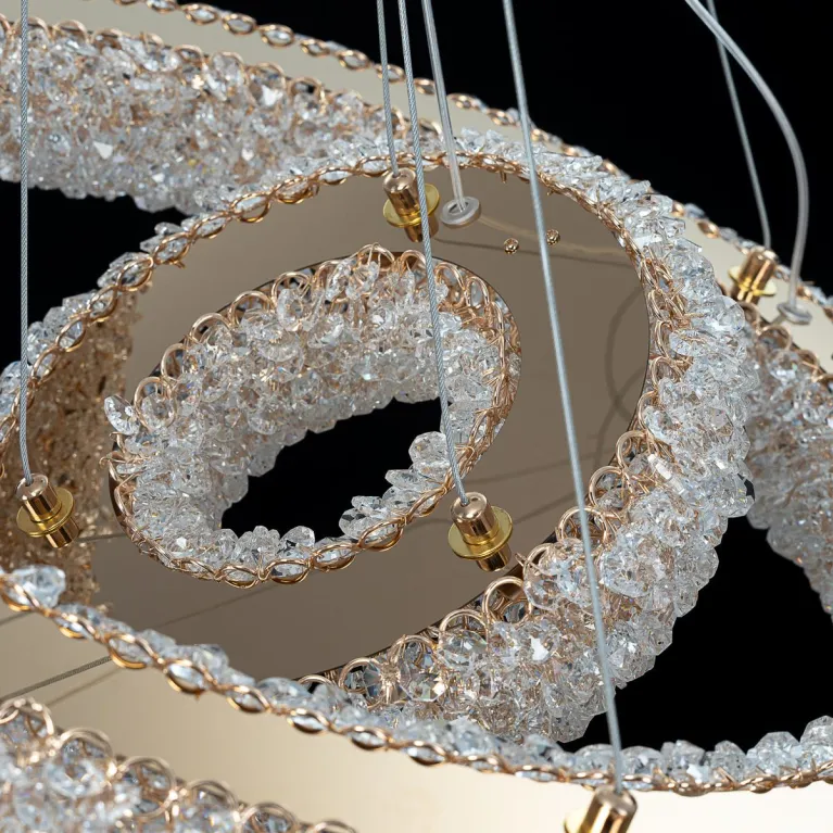 Преобладающий цвет плафонов: Прозрачный, арматуры: Золото; материал изготовления арматуры: Металл, размеры, мм: / высота 1200 / диаметр 580. Общая мощность – 75 Ватт, а максимальная площадь освещения до 24 м2. Основной тип ламп, предусмотренный производителем: Светодиодная с цоколем LED. В зависимости от предпочтений можно использовать лампы теплового, холодного или нейтрального света, за исключением люстр с типом цоколя LED.