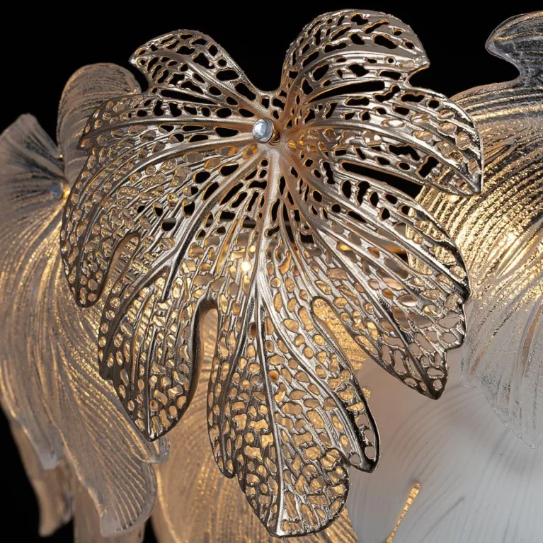 Преобладающий цвет плафонов: Разноцветный, арматуры: Золото; материал изготовления арматуры: Металл, размеры, мм: / высота 1100 / диаметр 800. Общая мощность – 1260 Ватт, а максимальная площадь освещения до 34 м2. Основной тип ламп, предусмотренный производителем: Накаливания с цоколем E14. В зависимости от предпочтений можно использовать лампы теплового, холодного или нейтрального света, за исключением люстр с типом цоколя LED.