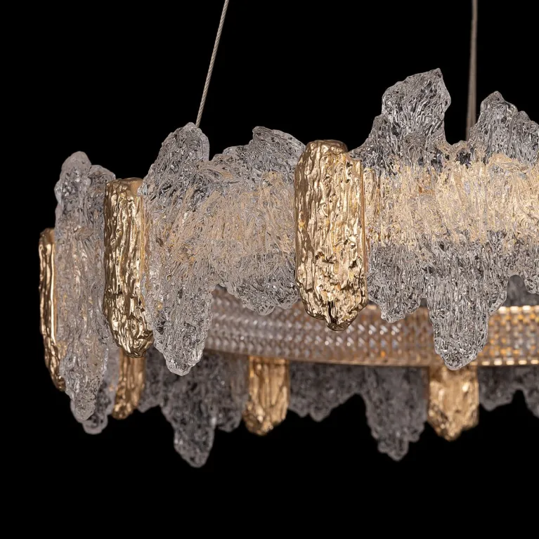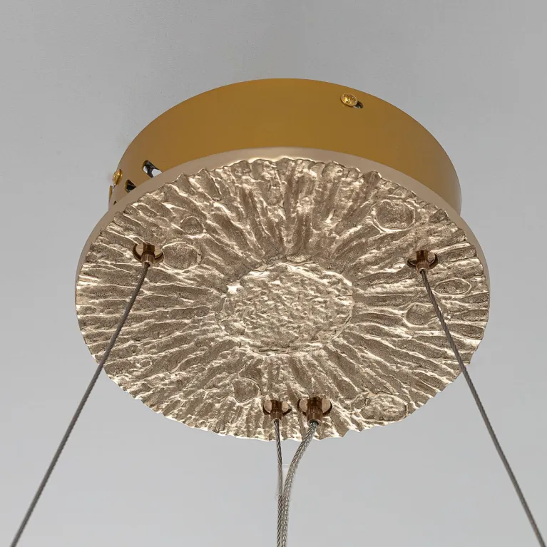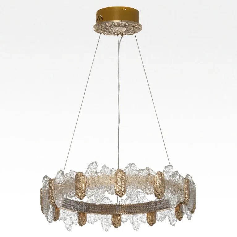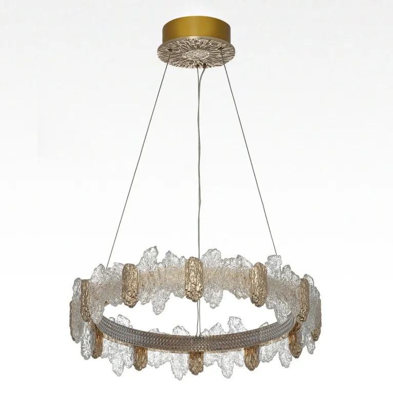 Преобладающий цвет плафонов: Разноцветный, арматуры: Золото; материал изготовления арматуры: Металл, размеры, мм: / высота 2000 / диаметр 600. Общая мощность – 66 Ватт. Основной тип ламп, предусмотренный производителем: Светодиодная с цоколем LED. В зависимости от предпочтений можно использовать лампы теплового, холодного или нейтрального света, за исключением люстр с типом цоколя LED.