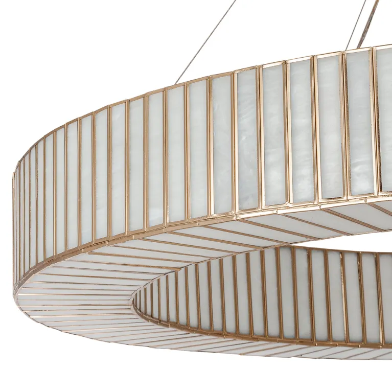 Преобладающий цвет плафонов: Белый, арматуры: Золото; материал изготовления арматуры: Металл, размеры, мм: / высота 130 / диаметр 1200. Общая мощность – 320 Ватт, а максимальная площадь освещения до 16 м2. Основной тип ламп, предусмотренный производителем: Накаливания с цоколем E27. В зависимости от предпочтений можно использовать лампы теплового, холодного или нейтрального света, за исключением люстр с типом цоколя LED.