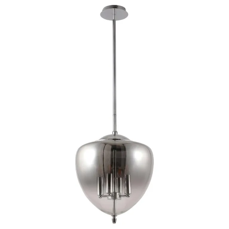 Преобладающий цвет люстры: Серый, плафонов: Серый, арматуры: Хром; материал изготовления арматуры: Металл, размеры, мм: / высота 635 / диаметр 350. Общая мощность – 160 Ватт, а максимальная площадь освещения до 8 м2. Основной тип ламп, предусмотренный производителем: Накаливания с цоколем E14. В зависимости от предпочтений можно использовать лампы теплового, холодного или нейтрального света, за исключением люстр с типом цоколя LED.