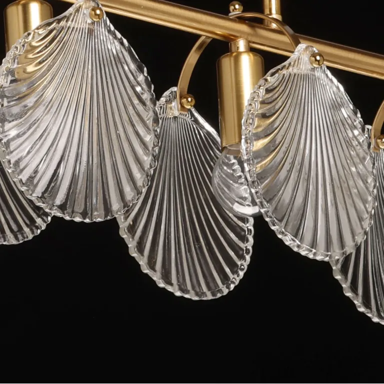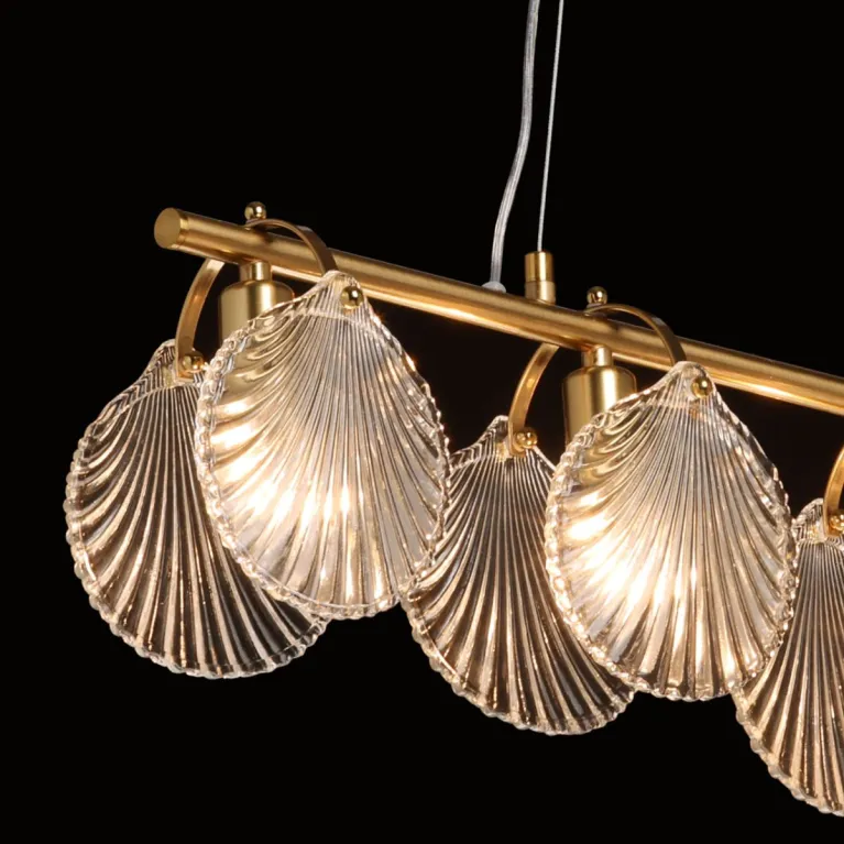 Преобладающий цвет плафонов: Прозрачный, арматуры: Латунь; материал изготовления арматуры: Металл, размеры, мм: длина 670 / ширина 120 / высота 1220 Общая мощность – 240 Ватт, а максимальная площадь освещения до 12 м2. Основной тип ламп, предусмотренный производителем: Накаливания с цоколем E14. В зависимости от предпочтений можно использовать лампы теплового, холодного или нейтрального света, за исключением люстр с типом цоколя LED.