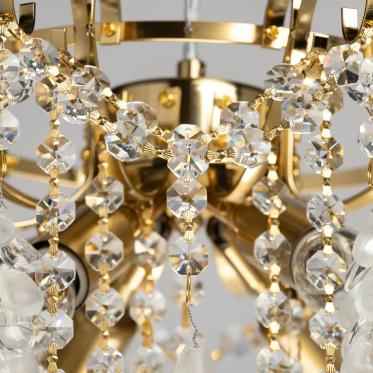Преобладающий цвет плафонов: Белый, арматуры: Бронза; материал изготовления арматуры: Металл, размеры, мм: / высота 710 / диаметр 500. Общая мощность – 240 Ватт, а максимальная площадь освещения до 12 м2. Основной тип ламп, предусмотренный производителем: Накаливания с цоколем E14. В зависимости от предпочтений можно использовать лампы теплового, холодного или нейтрального света, за исключением люстр с типом цоколя LED.