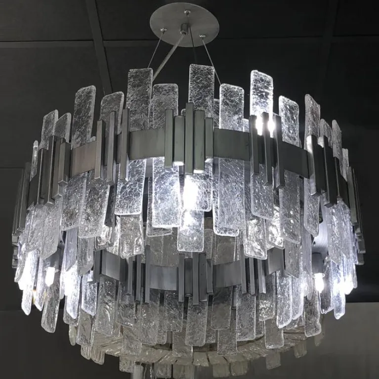 Преобладающий цвет плафонов: Прозрачный, арматуры: Серебро; материал изготовления арматуры: Металл, размеры, мм: / высота 280 / диаметр 600. Общая мощность – 560 Ватт. Основной тип ламп, предусмотренный производителем: Галогеновая с цоколем G9. В зависимости от предпочтений можно использовать лампы теплового, холодного или нейтрального света, за исключением люстр с типом цоколя LED.