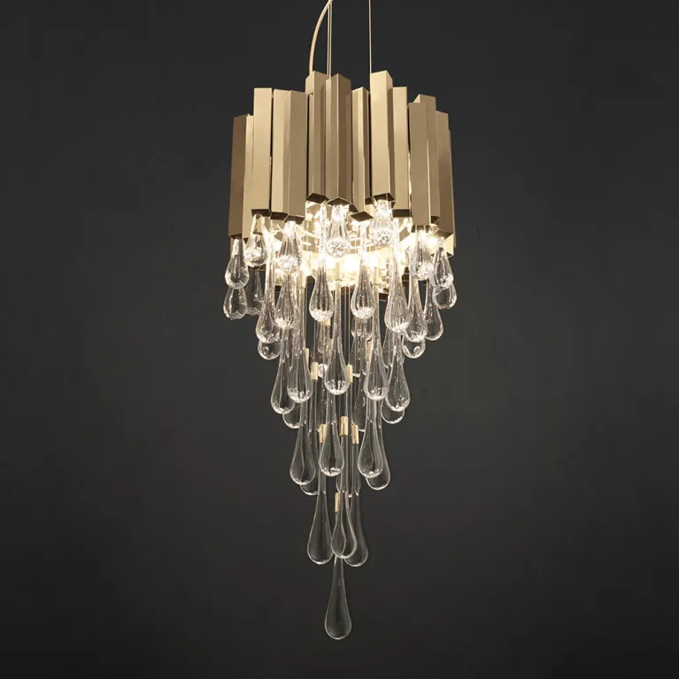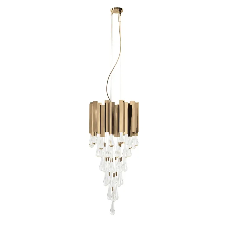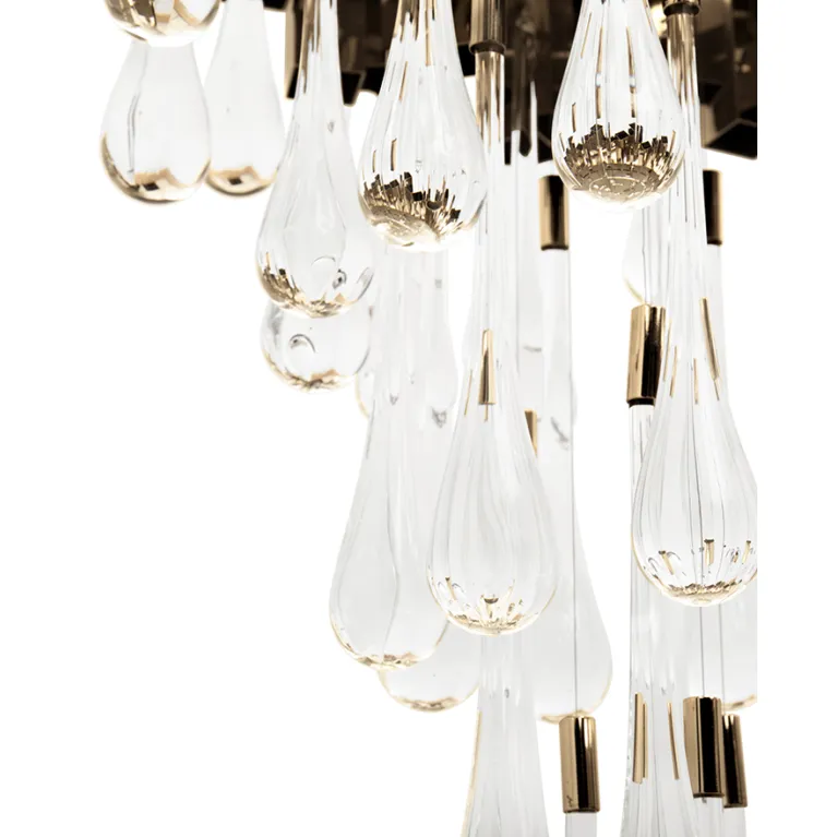 Преобладающий цвет плафонов: Прозрачный, арматуры: Золото; материал изготовления арматуры: Металл, размеры, мм: / высота 900 / диаметр 360. Общая мощность – 40 Ватт. Основной тип ламп, предусмотренный производителем: Светодиодная с цоколем G9. В зависимости от предпочтений можно использовать лампы теплового, холодного или нейтрального света, за исключением люстр с типом цоколя LED.