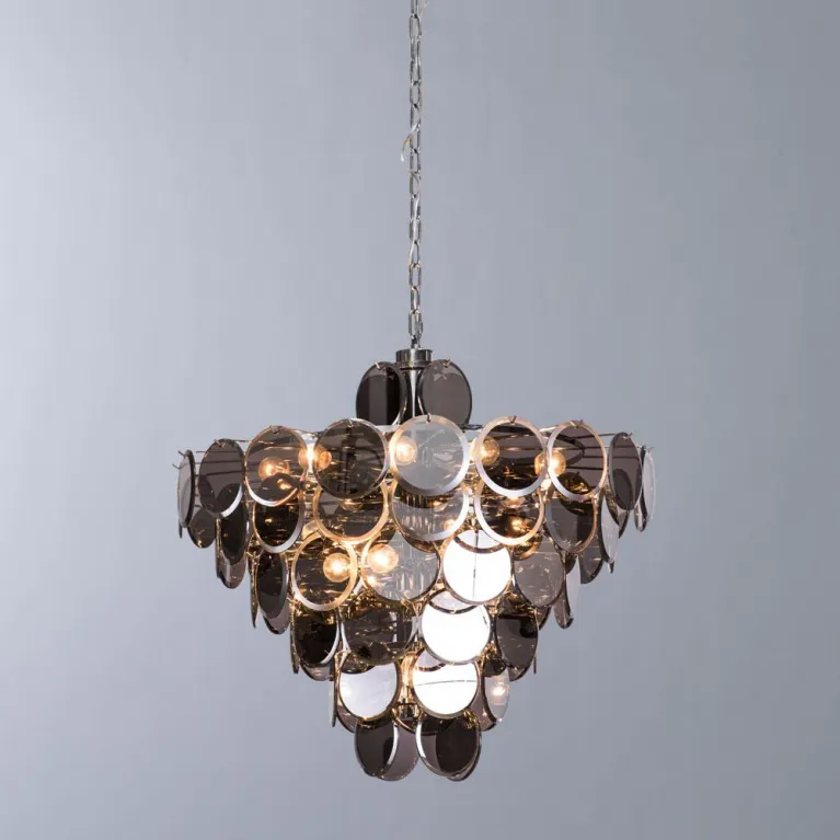 Люстра совместима с лампами типа E27 и может вмещать до 8 источников света, что обеспечивает яркое и равномерное освещение пространства. Она изготовлена из прочного металла и качественного стекла, благодаря чему отличается долговечностью и износостойкостью.