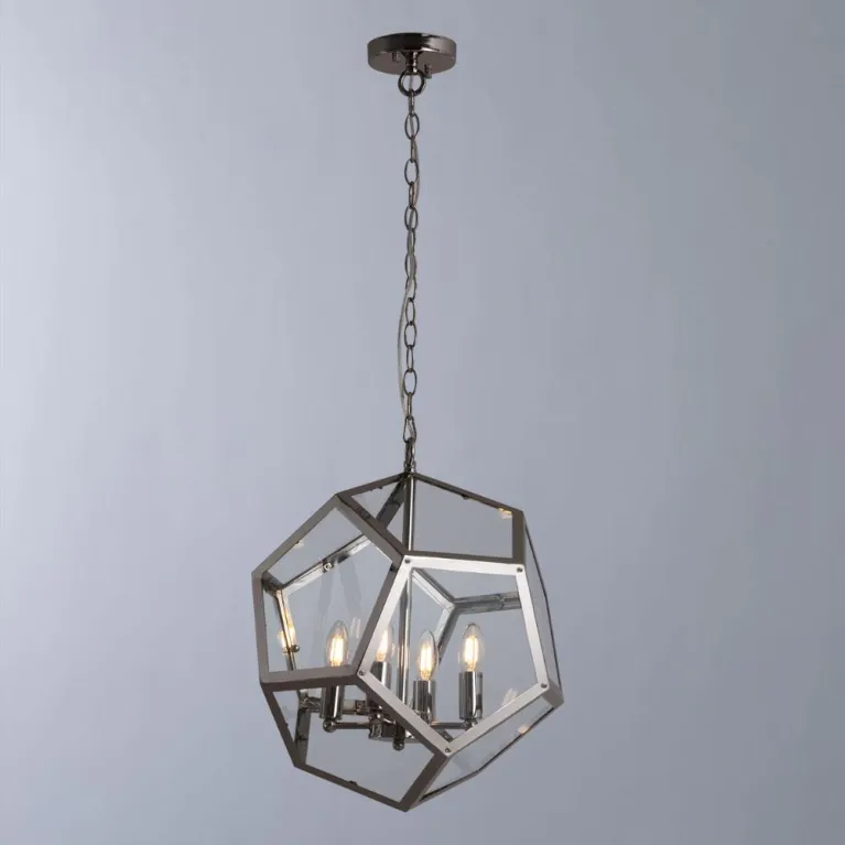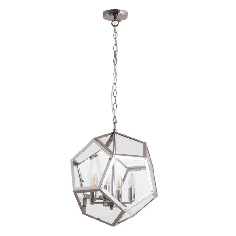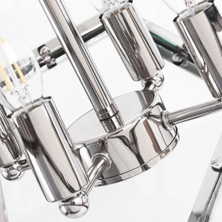 Преобладающий цвет люстры: Матовый никель, плафонов: Прозрачный, арматуры: Матовый никель; материал изготовления арматуры: Металл, размеры, мм: / высота 450 / диаметр 420. Общая мощность – 160 Ватт. Основной тип ламп, предусмотренный производителем: Накаливания с цоколем E14. В зависимости от предпочтений можно использовать лампы теплового, холодного или нейтрального света, за исключением люстр с типом цоколя LED.