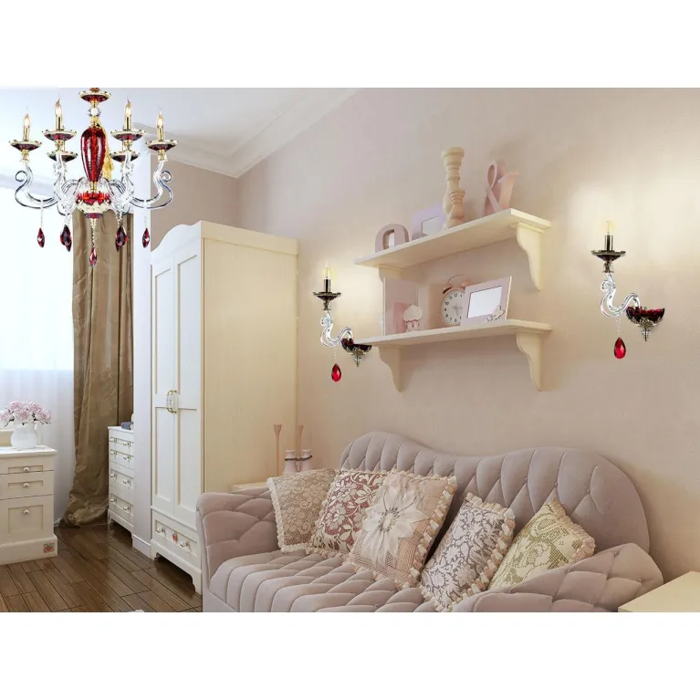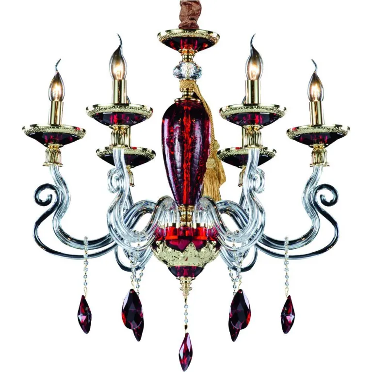 Рожки люстры направлены вниз, что обеспечивает максимальную освещенность на уровне пола и создает комфортное ощущение. Плафоны выполнены из прочного акрила, устойчивого к царапинам и ультрафиолетовому излучению, благодаря чему люстра долго сохраняет свой первоначальный внешний вид.
