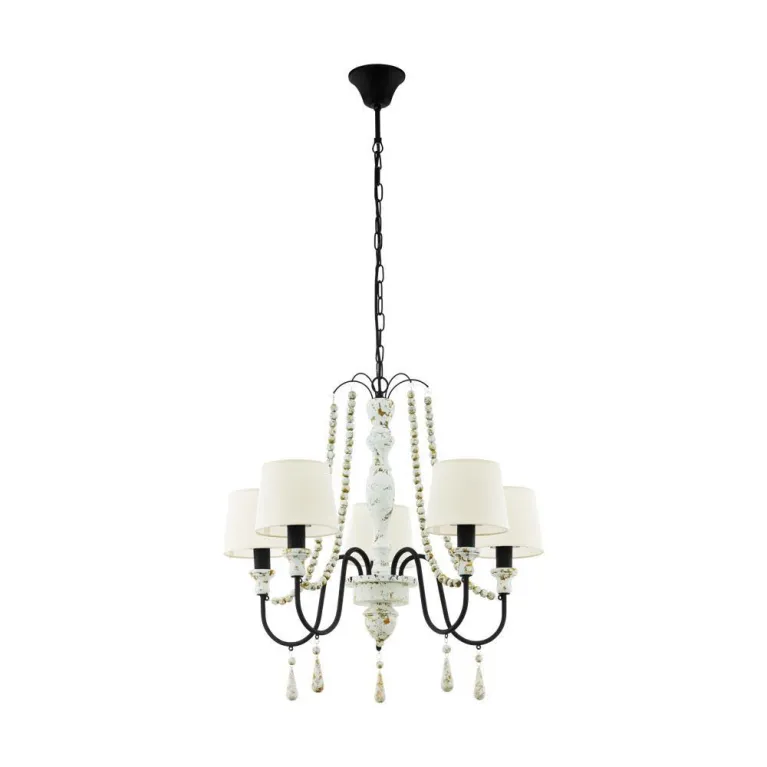 Преобладающий цвет люстры: Бежевый, плафонов: Бежевый, арматуры: Коричневый; материал изготовления арматуры: Металл, размеры, мм: / высота 1100 / диаметр 650. Общая мощность – 200 Ватт. Основной тип ламп, предусмотренный производителем: Накаливания с цоколем E27. В зависимости от предпочтений можно использовать лампы теплового, холодного или нейтрального света, за исключением люстр с типом цоколя LED.