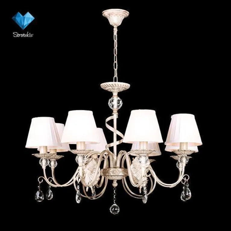 Преобладающий цвет люстры: Белый, плафонов: Белый, арматуры: Белый; материал изготовления арматуры: Металл, размеры, мм: / высота 740 / диаметр 760. Общая мощность – 480 Ватт, а максимальная площадь освещения до 26,7 м2. Основной тип ламп, предусмотренный производителем: Накаливания с цоколем E14. В зависимости от предпочтений можно использовать лампы теплового, холодного или нейтрального света, за исключением люстр с типом цоколя LED.