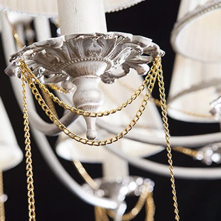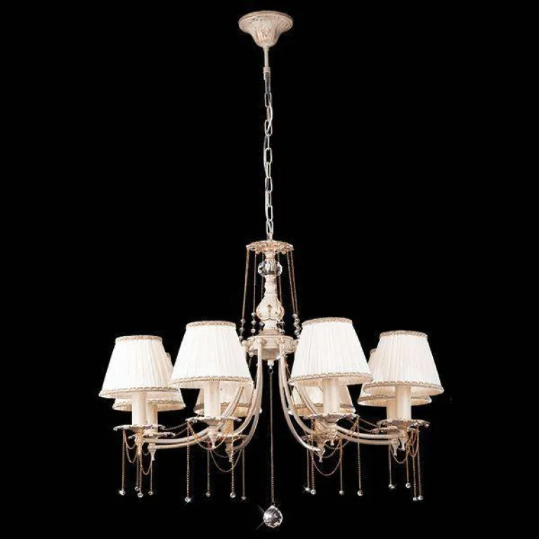 Преобладающий цвет люстры: Белый, плафонов: Белый, арматуры: Античная бронза; материал изготовления арматуры: Металл, размеры, мм: / высота 1090 / диаметр 670. Общая мощность – 320 Ватт, а максимальная площадь освещения до 20 м2. Основной тип ламп, предусмотренный производителем: Накаливания с цоколем E14. В зависимости от предпочтений можно использовать лампы теплового, холодного или нейтрального света, за исключением люстр с типом цоколя LED.