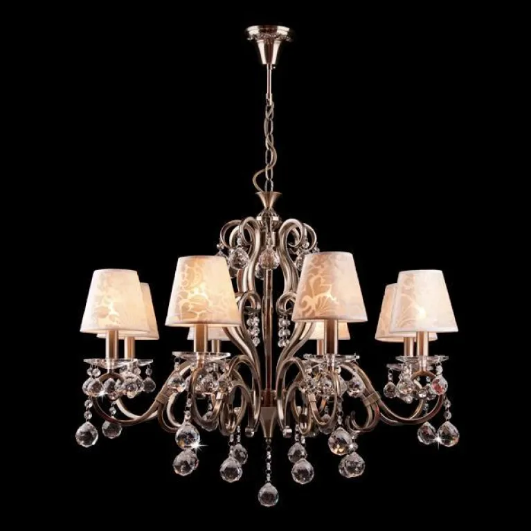 Преобладающий цвет люстры: Бежевый, плафонов: Бежевый, арматуры: Бронза; материал изготовления арматуры: Металл, размеры, мм: / высота 700 / диаметр 750. Общая мощность – 480 Ватт, а максимальная площадь освещения до 26,7 м2. Основной тип ламп, предусмотренный производителем: Накаливания с цоколем E14. В зависимости от предпочтений можно использовать лампы теплового, холодного или нейтрального света, за исключением люстр с типом цоколя LED.