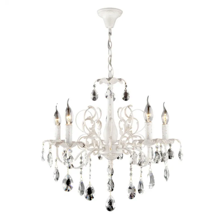 Преобладающий цвет люстры: Белый, арматуры: Белый; материал изготовления арматуры: Металл, размеры, мм: / высота 950 / диаметр 580. Общая мощность – 200 Ватт, а максимальная площадь освещения до 16 м2. Основной тип ламп, предусмотренный производителем: Накаливания с цоколем E14. В зависимости от предпочтений можно использовать лампы теплового, холодного или нейтрального света, за исключением люстр с типом цоколя LED.