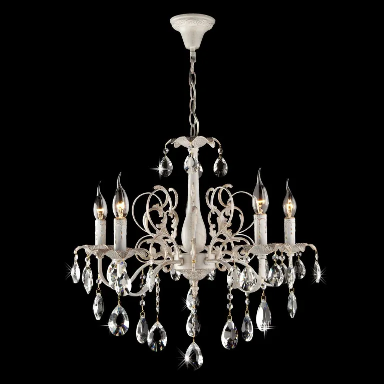 Подвесная люстра Eurosvet 3113/5 белый с золотом/прозрачный хрусталь Strotskis российского производителя Eurosvet отлично подходит для интерьеров в стиле классика, рекомендуемое помещение: Для спальни.