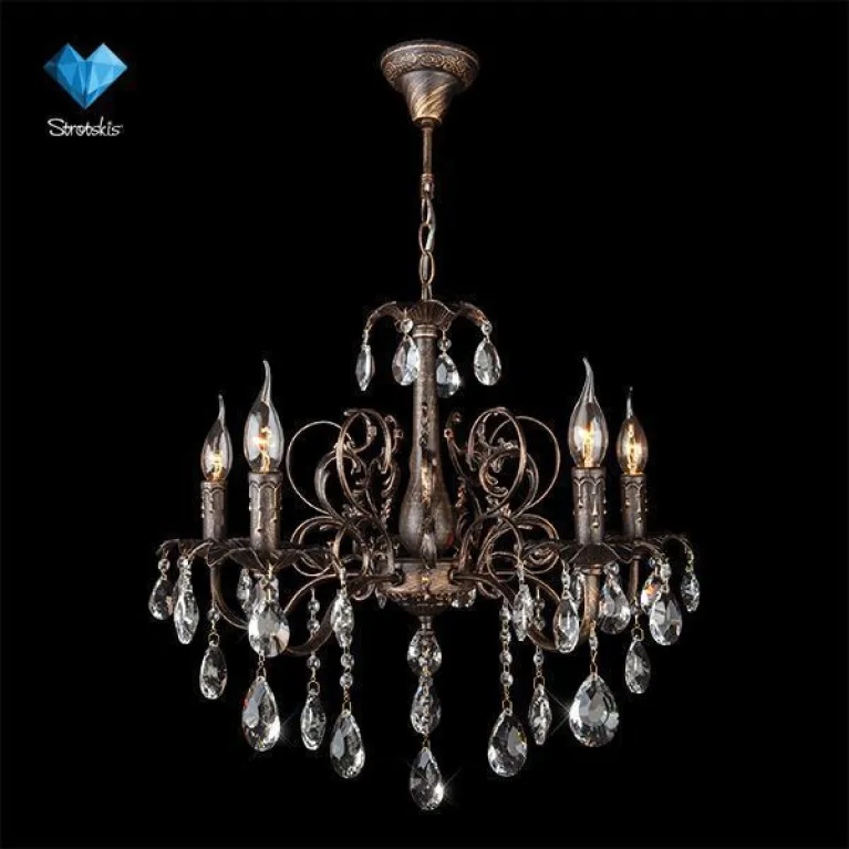 Подвесная люстра Eurosvet 3113/5 черный с золотом/прозрачный хрусталь Strotskis российского производителя Eurosvet отлично подходит для интерьеров в стиле классика, рекомендуемое помещение: Для спальни.