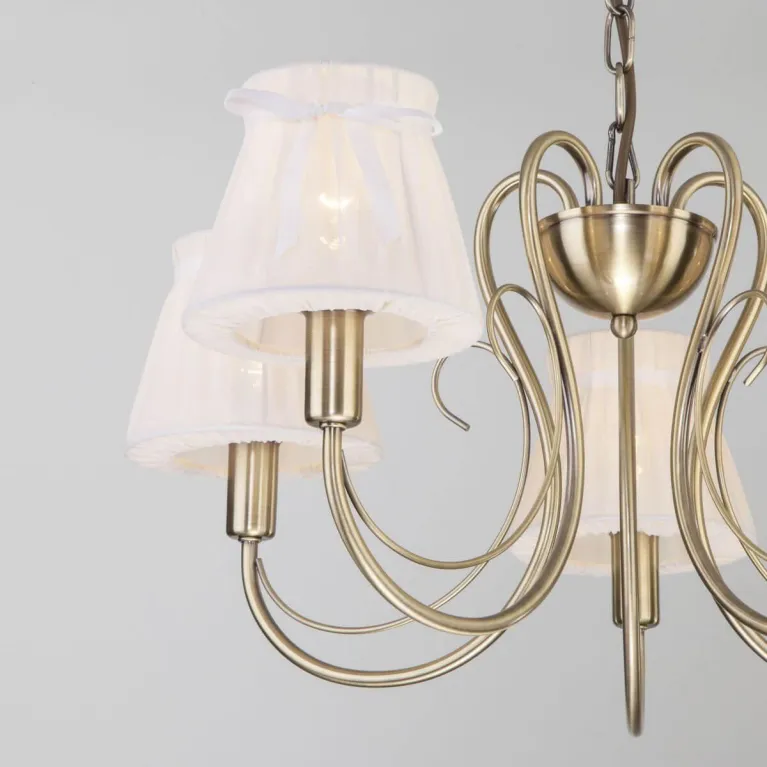 Преобладающий цвет люстры: Бежевый, плафонов: Бежевый, арматуры: Античная бронза; материал изготовления арматуры: Металл, размеры, мм: / высота 750 / диаметр 600. Общая мощность – 200 Ватт, а максимальная площадь освещения до 16 м2. Основной тип ламп, предусмотренный производителем: Накаливания с цоколем E14. В зависимости от предпочтений можно использовать лампы теплового, холодного или нейтрального света, за исключением люстр с типом цоколя LED.