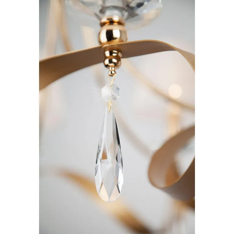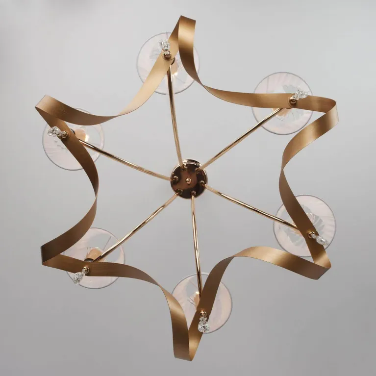 Подвесная конструкция позволяет регулировать высоту люстры, что делает её удобной для установки в помещениях с высокими потолками. Надежное крепление гарантирует безопасность и стабильность в эксплуатации.