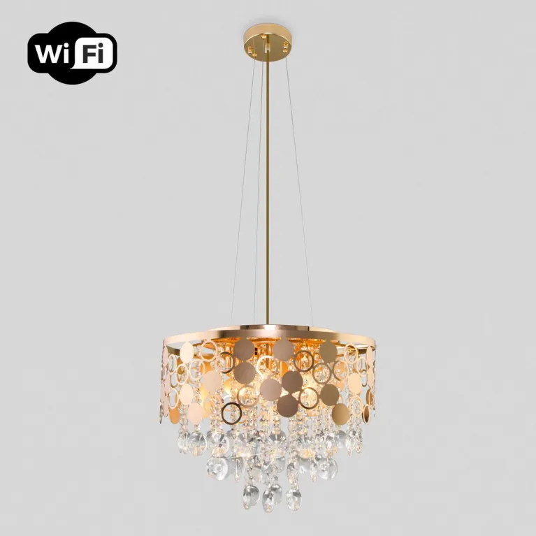 Эта люстра оснащена технологией Smart Light, которая позволяет дистанционно управлять яркостью и цветом света, а также задавать различные сценарии освещения в зависимости от времени суток и настроения. Это функциональное решение делает её идеальным выбором для современного дома.
