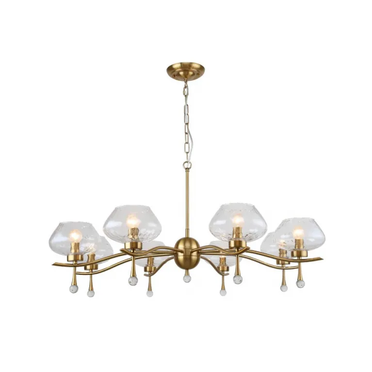 Светильник имеет подвесной тип монтажа и крепится на потолок с помощью надежного крепежа. Регулируемая длина подвеса позволяет адаптировать высоту люстры в зависимости от высоты потолков и особенностей помещения, обеспечивая максимальный комфорт и удобство использования.