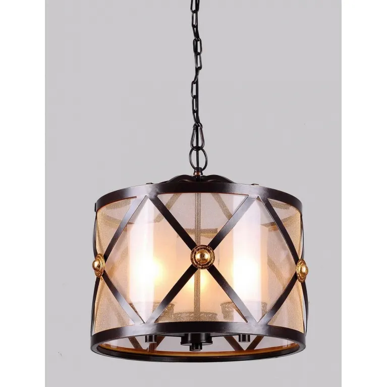 Преобладающий цвет плафонов: Коричневый, арматуры: Коричневый; материал изготовления арматуры: Металл, размеры, мм: / высота 410 / диаметр 500. Общая мощность – 120 Ватт, а максимальная площадь освещения до 6,7 м2. Основной тип ламп, предусмотренный производителем: Накаливания с цоколем E27. В зависимости от предпочтений можно использовать лампы теплового, холодного или нейтрального света, за исключением люстр с типом цоколя LED.