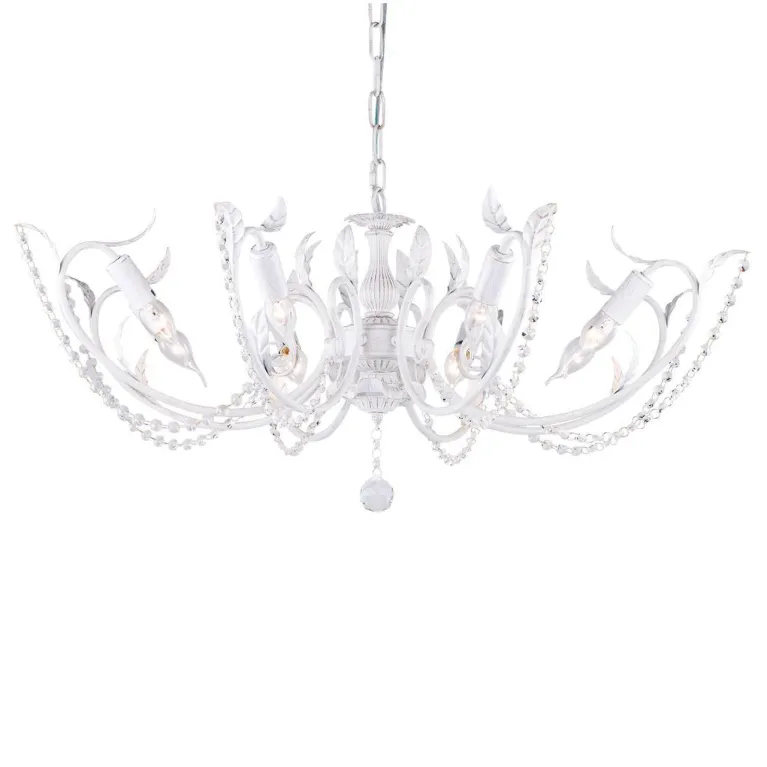 Преобладающий цвет люстры: Белый, арматуры: Белый; материал изготовления арматуры: Металл, размеры, мм: / высота 330 / диаметр 920. Общая мощность – 320 Ватт, а максимальная площадь освещения до 17,8 м2. Основной тип ламп, предусмотренный производителем: Накаливания с цоколем E14. В зависимости от предпочтений можно использовать лампы теплового, холодного или нейтрального света, за исключением люстр с типом цоколя LED.