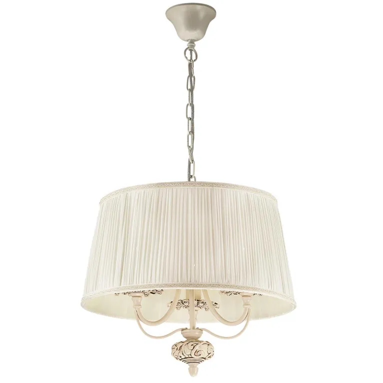 Преобладающий цвет плафонов: Белый, арматуры: Белый; материал изготовления арматуры: Металл, размеры, мм: / высота 375 / диаметр 400. Общая мощность – 120 Ватт, а максимальная площадь освещения до 6,7 м2. Основной тип ламп, предусмотренный производителем: Накаливания с цоколем E14. В зависимости от предпочтений можно использовать лампы теплового, холодного или нейтрального света, за исключением люстр с типом цоколя LED.