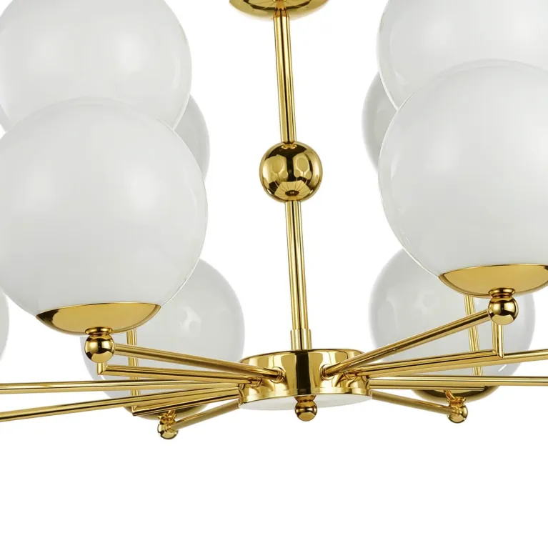 Этот осветительный прибор оснащён двенадцатью лампами, что обеспечивает яркое и равномерное освещение пространства. Суммарная мощность ламп — 480 Вт, что позволяет использовать люстры для помещений большой площади. Цоколь типа E14 позволяет использовать как традиционные лампы накаливания, так и энергосберегающие и светодиодные лампы, что предоставляет максимальную гибкость в выборе источников света.