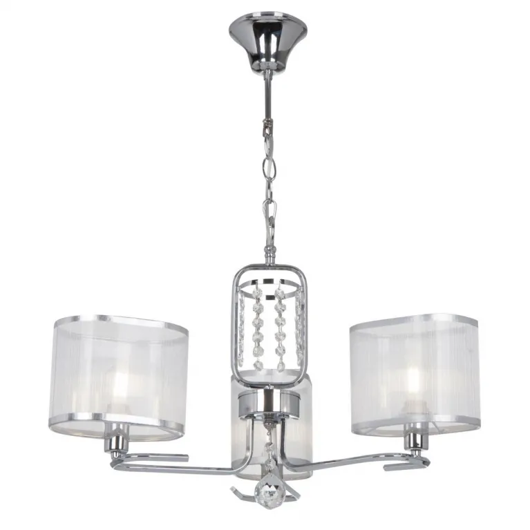 Преобладающий цвет люстры: Серебро, плафонов: Серебро, арматуры: Хром; материал изготовления арматуры: Металл, размеры, мм: / высота 335 / диаметр 520. Общая мощность – 120 Ватт. Основной тип ламп, предусмотренный производителем: Накаливания с цоколем E14. В зависимости от предпочтений можно использовать лампы теплового, холодного или нейтрального света, за исключением люстр с типом цоколя LED.