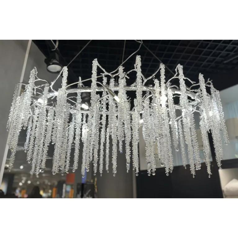 Преобладающий цвет плафонов: Прозрачный, арматуры: Серебро; материал изготовления арматуры: Металл, размеры, мм: длина 1200 / ширина 600 / высота 450 Общая мощность – 480 Ватт, а максимальная площадь освещения до 30 м2. Основной тип ламп, предусмотренный производителем: Галогеновая с цоколем G9. В зависимости от предпочтений можно использовать лампы теплового, холодного или нейтрального света, за исключением люстр с типом цоколя LED.