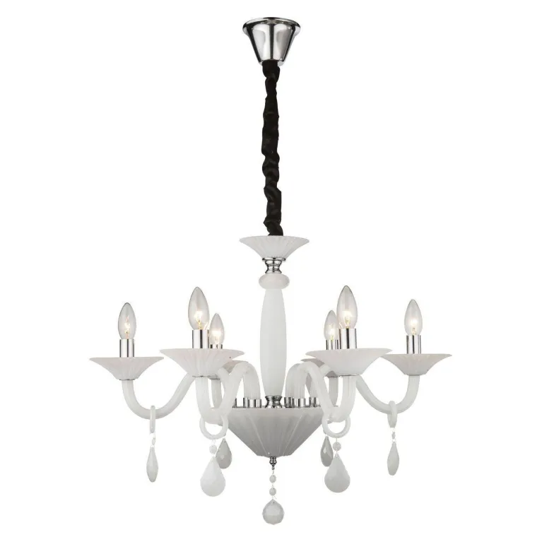 Преобладающий цвет люстры: Белый, арматуры: Белый; материал изготовления арматуры: Металл, размеры, мм: / высота 950 / диаметр 640. Общая мощность – 240 Ватт, а максимальная площадь освещения до 13,3 м2. Основной тип ламп, предусмотренный производителем: Накаливания с цоколем E14. В зависимости от предпочтений можно использовать лампы теплового, холодного или нейтрального света, за исключением люстр с типом цоколя LED.