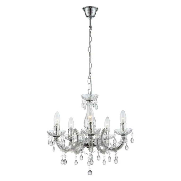 Люстра имеет пять ламп с цоколем E27, что обеспечивает яркое и равномерное освещение пространства. Она изготовлена из качественных материалов, таких как металл и стекло, и отличается долговечностью и надежностью. Суммарная мощность ламп может составлять до 60 Вт, что позволяет создавать комфортное освещение в помещении.